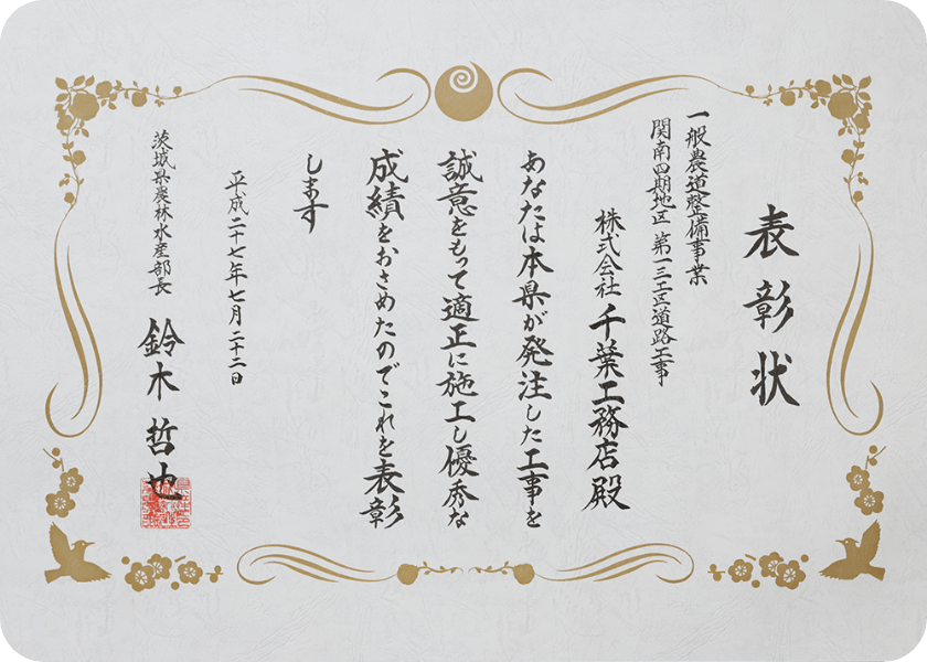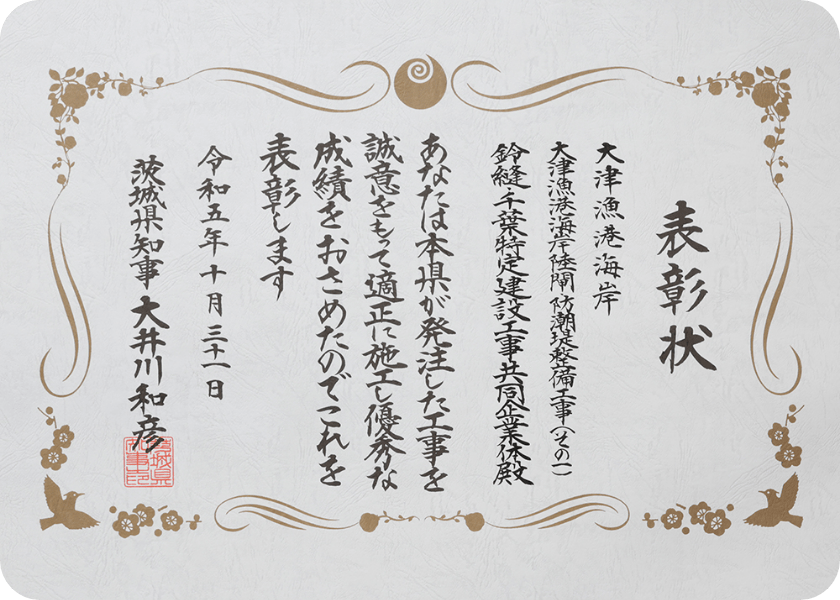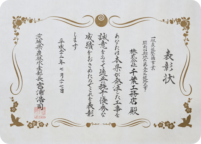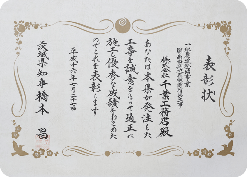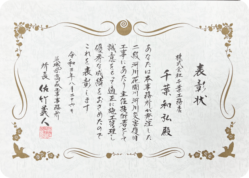 進化 千葉工務店ではICTやDXの積極的な導入、働き方改革や給与・休暇などの待遇改善により新しい建設会社の環境整備に努めています。主な優良工事表彰 -